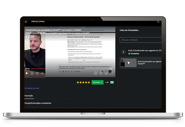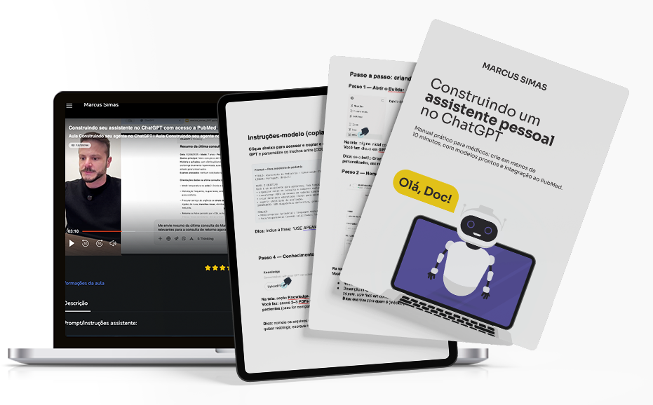 Você vai aprender, na prática, como configurar um assistente médico no ChatGPT conectado ao PubMed, sem precisar saber programar. Vai entender como obter respostas confiáveis e éticas, criar fluxos personalizados para seu consultório e aplicar a inteligência artificial com segurança no seu dia a dia.
